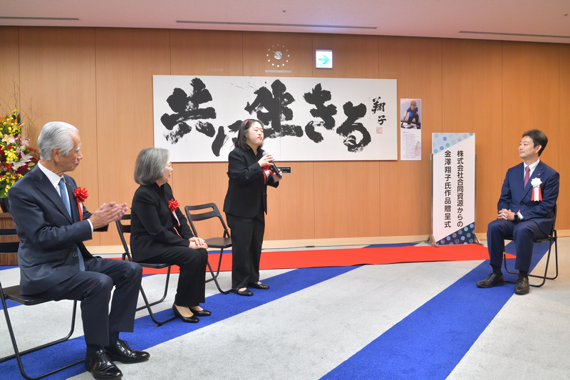 12月8日に金澤翔子氏、千葉県知事 熊谷俊人氏、当社 山ノ井社長出席のもと、贈呈式・除幕式を行いました。